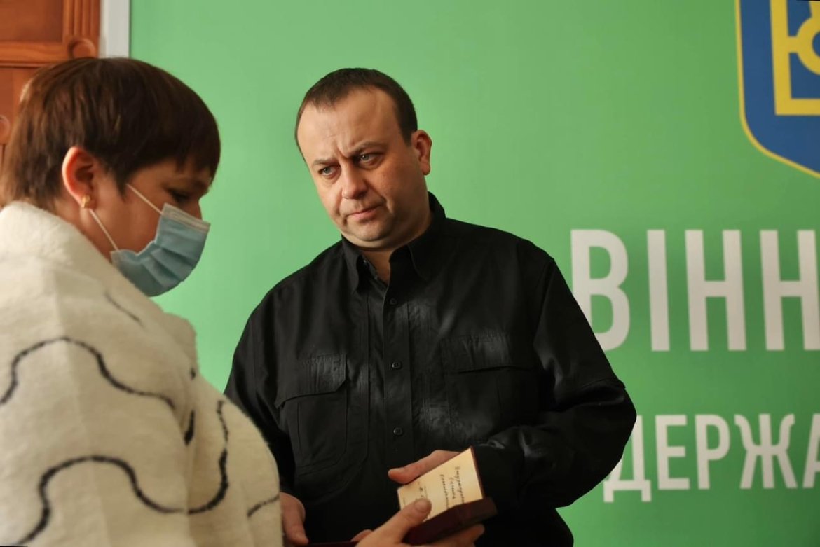Голова Вінницької обласної військової адміністрації Сергій Борзов передав родинам загиблих Захисників високі державні нагороди, присвоєні їм посмертно. Ордени отримували батьки, дружини, сестри – найрідніші люди героїв.