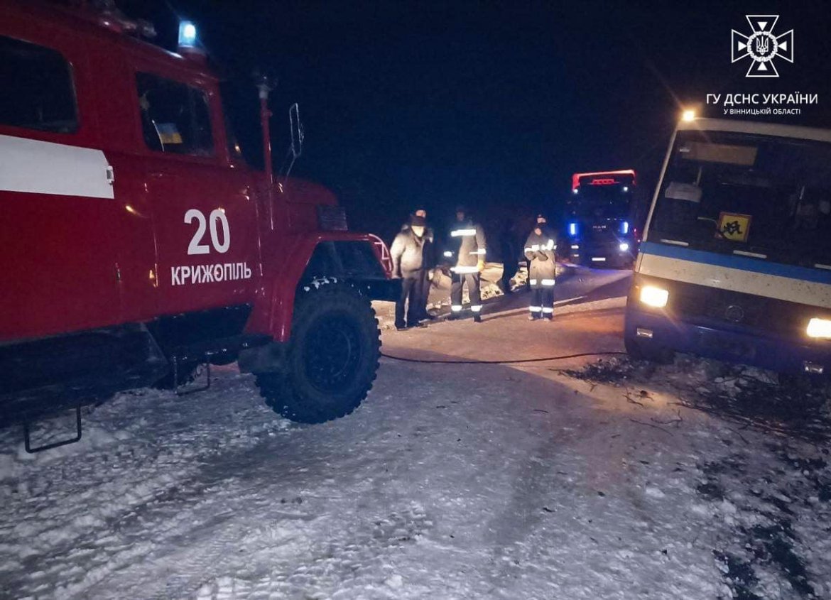 У зв'язку із погіршенням погодних умов у Вінницькій області, рятувальні служби продовжують активно надавати допомогу водіям, які опинилися у складних ситуаціях на дорогах. За інформацією Головного управління Державної служби з надзвичайних ситуацій, увечері 27 листопада, унаслідок снігових заметів, сталося застрягання двох автобусів, трьох легкових машин та однієї вантажівки на автошляху поблизу села Соколівка в межах Крижопільської територіальної громади.