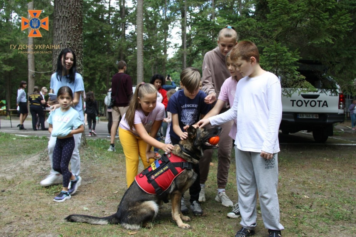 Діти дізналися про різновиди вибухонебезпечних предметів, як не піддатися паніці у надзвичайній ситуації, а також познайомилися з пошуковою собакою та її наставником з кінологічного розрахунку.