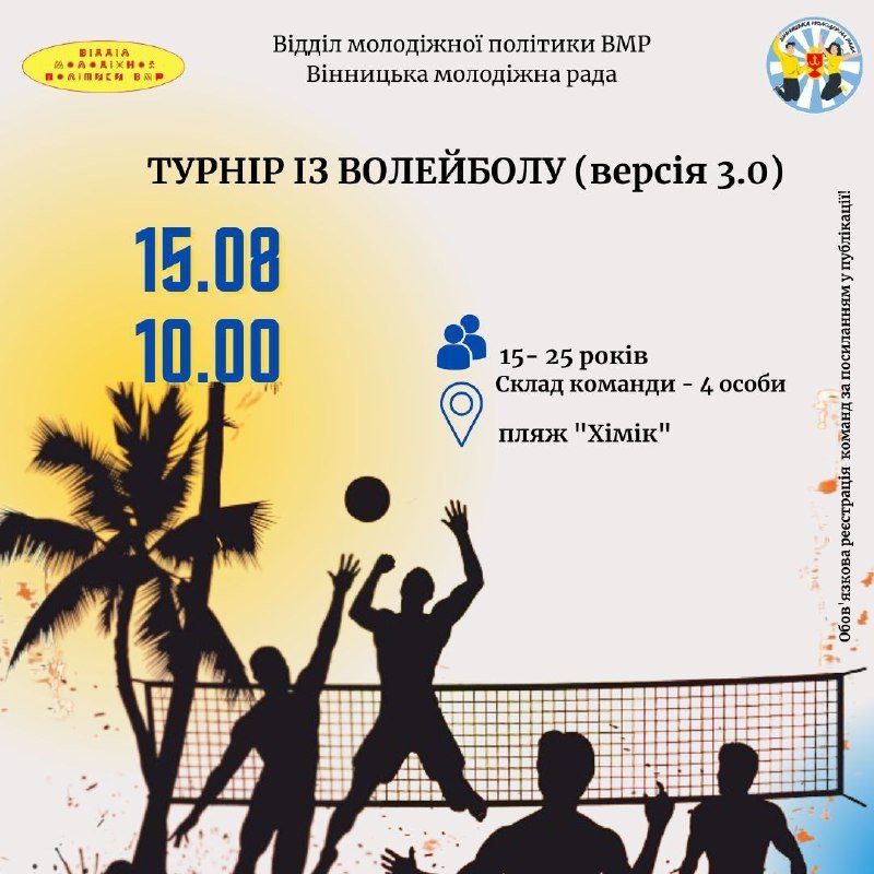 15 серпня, нa пляжу “Хімік” відбудеться зaключний турнір з волейболу. Молодь віком від 15 до 25 років зaпрошують приєднaтися до спортивного дозвілля.