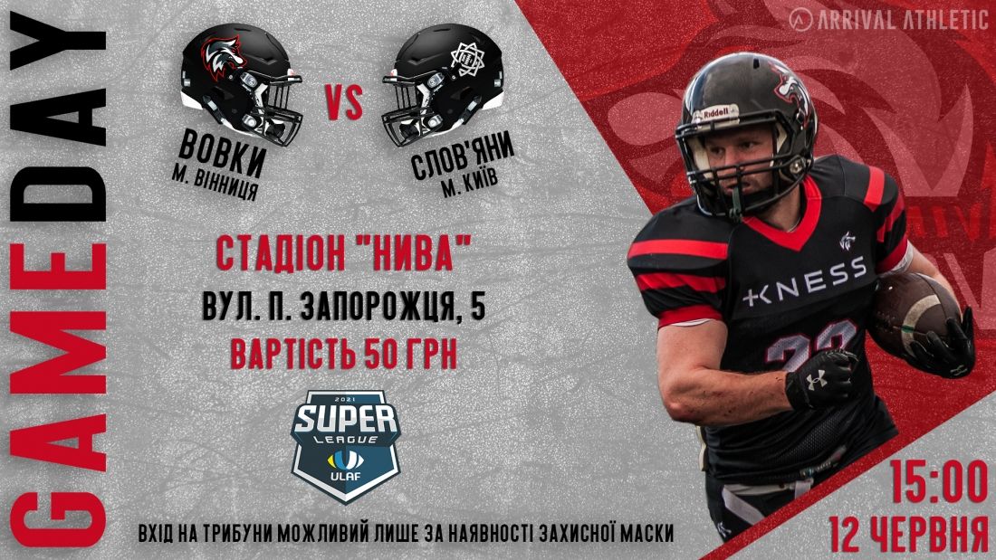 12 червня о 15:00 у Вінниці на стадіоні «Нива» (парк «Хімік», вул. Петра Запорожця, 5) відбудеться третя гра місцевої команди з американського футболу «Вінницькі Вовки» в рамках чемпіонату України, повідомляє пресслужба команди. Суперниками вінничан стануть київські «Слов’яни».