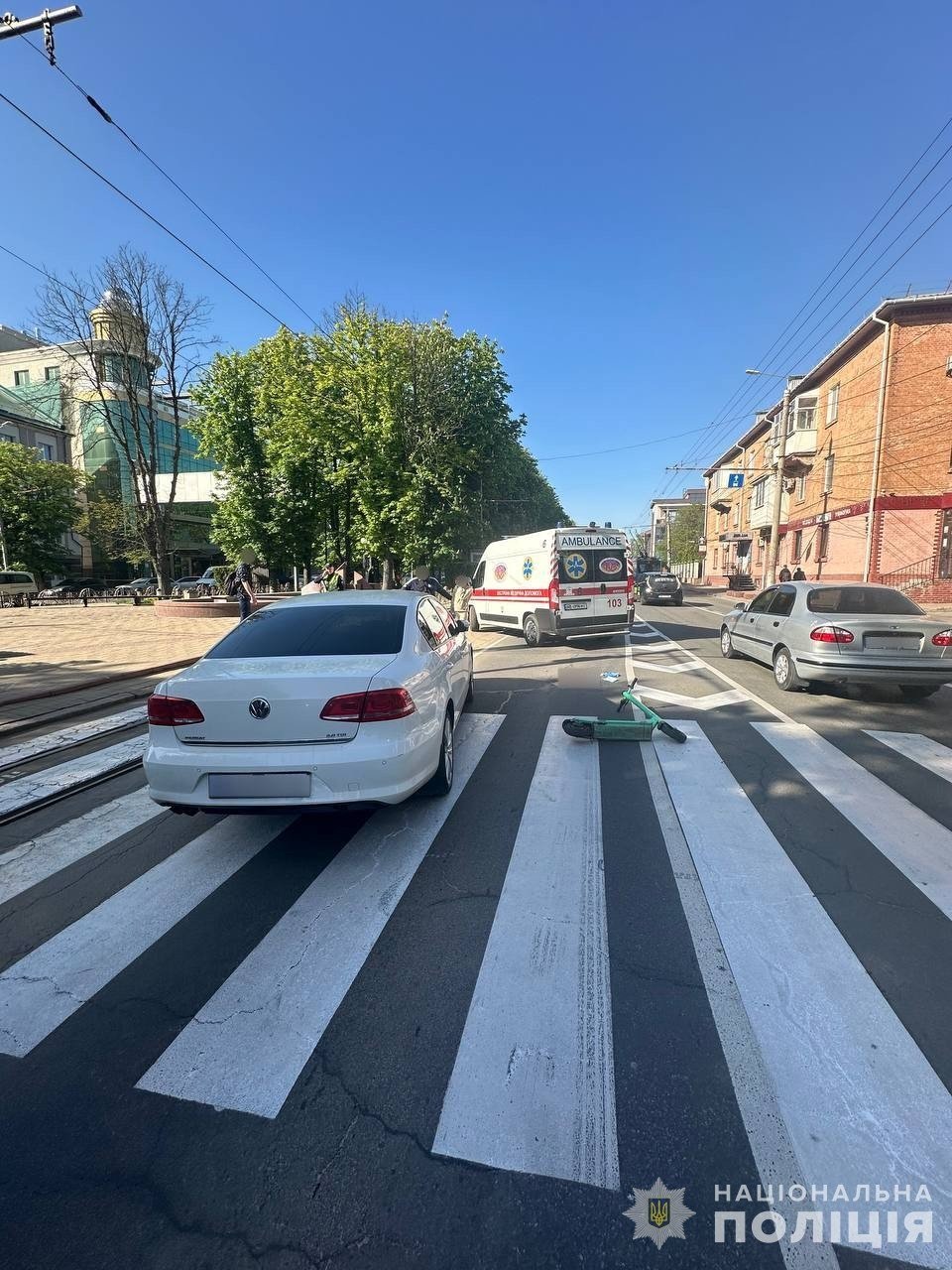Як повідомляє відділ комунікації поліції у Вінницькій області, за попередньою інформацією, 25-річна місцева жителька, керуючи автомобілем Volkswagen допустила наїзд на жінку, яка переїжджала нерегульований пішохідний перехід на електросамокаті. Внаслідок ДТП 32-річна місцева жителька зазнала травмувань й була доставлена до лікарні.