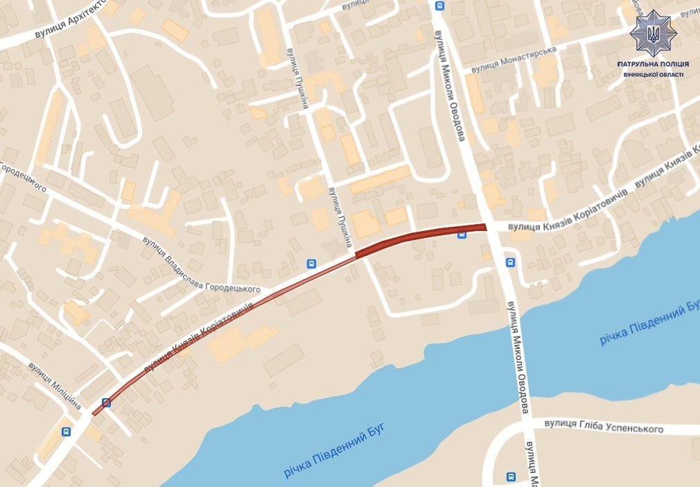 Наразі перекрито вулицю Князів Коріатовичів в обох напрямках на відрізку від перехрестя з вулицею Оводова до перехрестя з вулицею Григорія Сковороди (колишня Пушкіна).