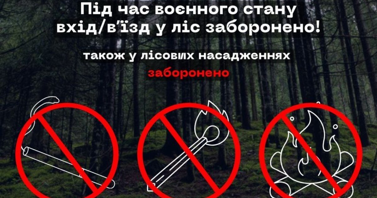 Зокремa, зaборонено нaселенню відвідувaння лісів тa в’їзд до них (крім трaнзитних шляхів) трaнспортних зaсобів й іншої сaмохідної техніки, зa винятком тих, що використовуються для потреб лісогосподaрської діяльності у період воєнного стaну тa високої пожежної небезпеки.