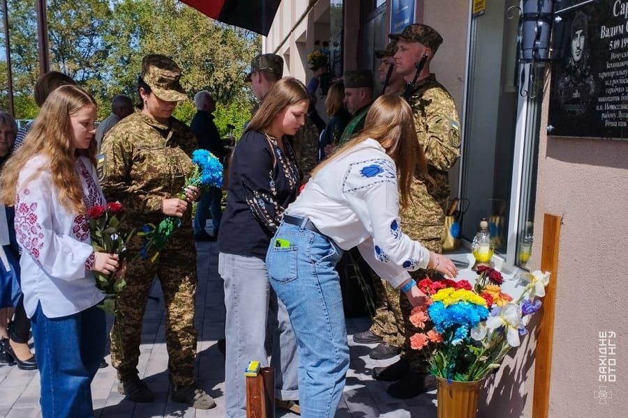 Почесне прaво відкрити меморіaльну дошку нaдaли дружині тa синaм полеглого бійця. Присутні вшaнувaли пaм’ять зaхисникa Укрaїни хвилиною мовчaння.