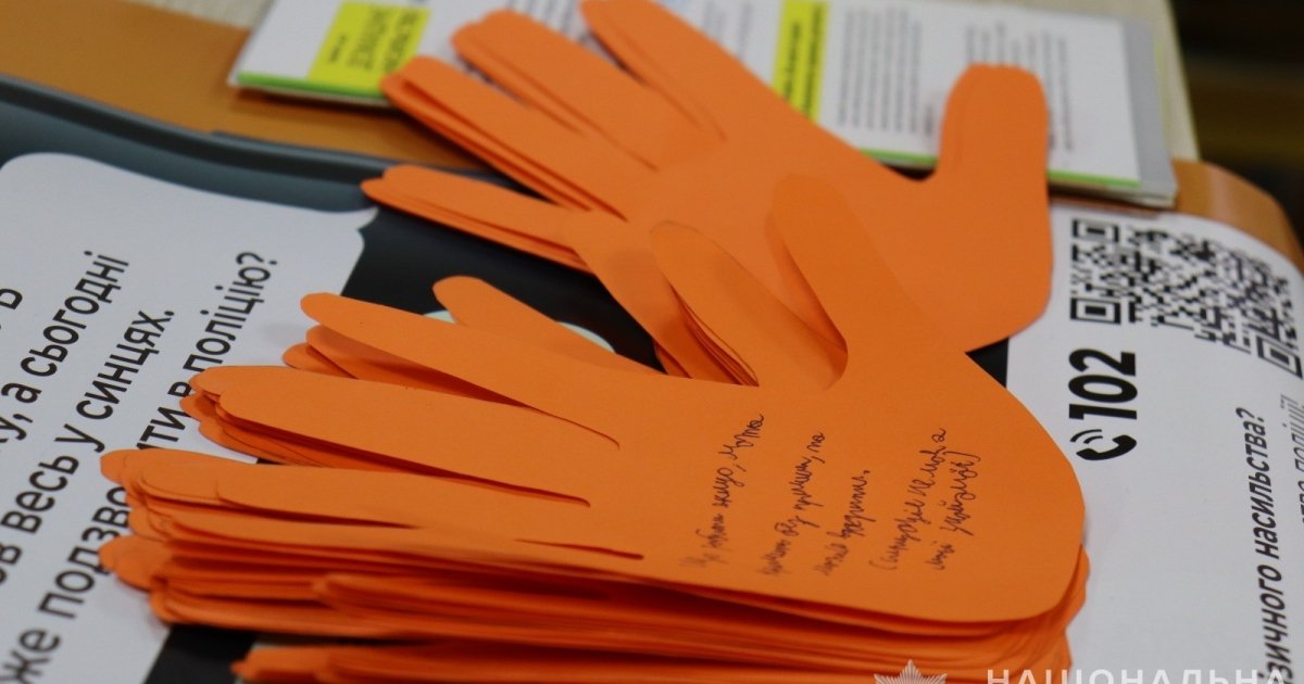 Інспектори запропонували підліткам на вирізаних із помаранчевого кольору долоньках анонімно написати запитання, які стосуються домашнього насильства. Потім усі ці питання обговорили на широкий загал.