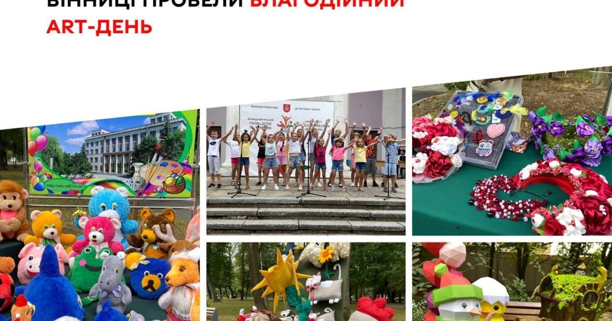Нещодавно у Вінниці відбувся благодійний ART-день. Вихованці міського палацу мистецтв провели розважально-ігрову програму під назвою "Палац скликає друзів". Також було презентовано виставку творчих об‘єднань та гуртків закладу. Іграшки та поробки, створені дітьми можна було придбати і таким чином надати допомогу ЗСУ.