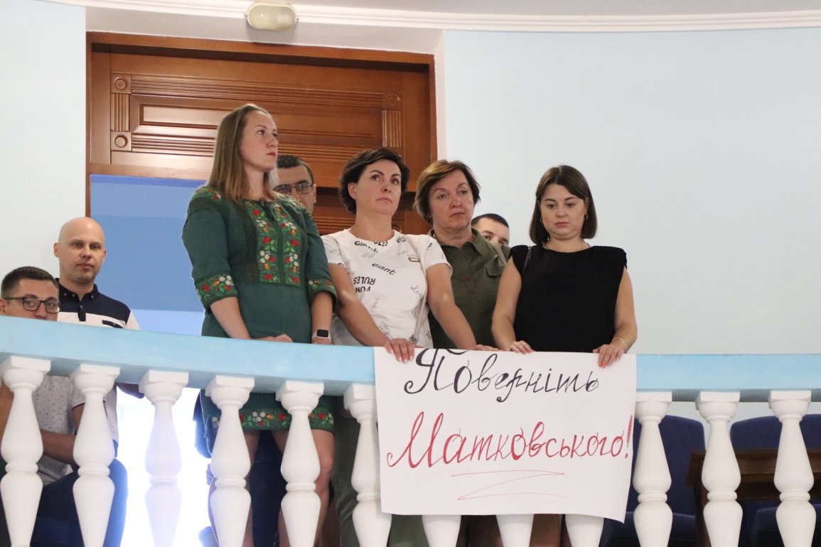 Протягом усієї сесії Ірина Борзова простояла з плакатом “Почуйте голос народу!”, але ні Ігоря Матковського, ні лікарів що були присутні на сесії в залі, депутати не заслухали.