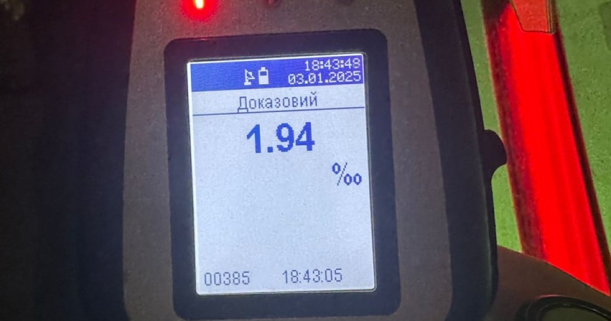 Для підтвердження стану водія патрульні запропонували пройти тест на алкотестері Dräger. Результат перевірки виявився шокуючим — 1,94 проміле алкоголю, що у десять разів перевищує допустиму норму.