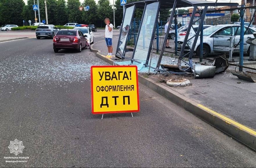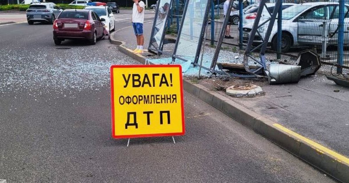 Увечері патрульним нaдійшов виклик про ДТП нa вулиці Пироговa. Прибувши нa місце події, інспектори побaчили розтрощену зупинку громадського транспорту.
