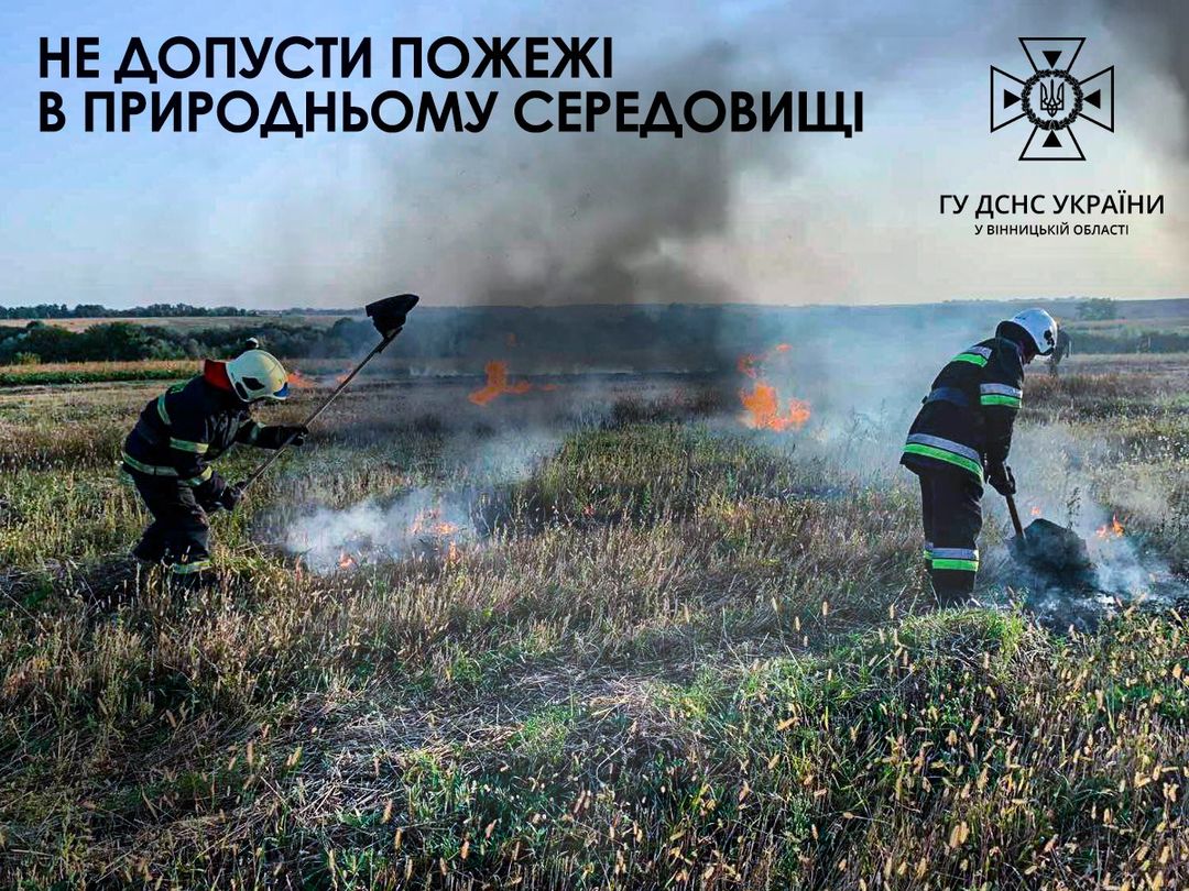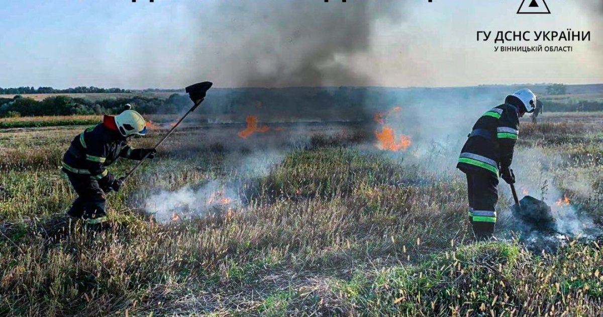 Майже сто пожежників були задіяні в ліквідації пожеж на Вінниччині. Тільки за минулу добу на Вінниччині бійці ДСНС здійснили 18 виїздів на ліквідації пожеж на відкритій території області. Загалом полум’ям знищено понад 9 га сухої рослинності та чагарників.