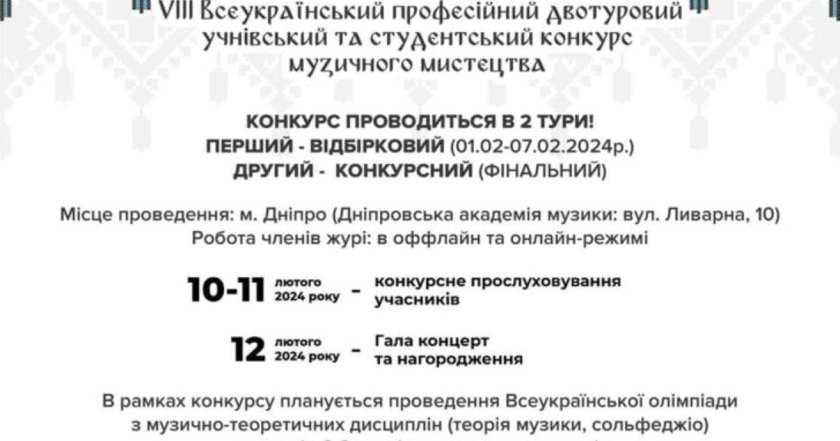 Зазначимо, що конкурс проходив на базі Дніпровської академії музики, в ньому взяли учать більше 400 юних музикантів з усієї України.