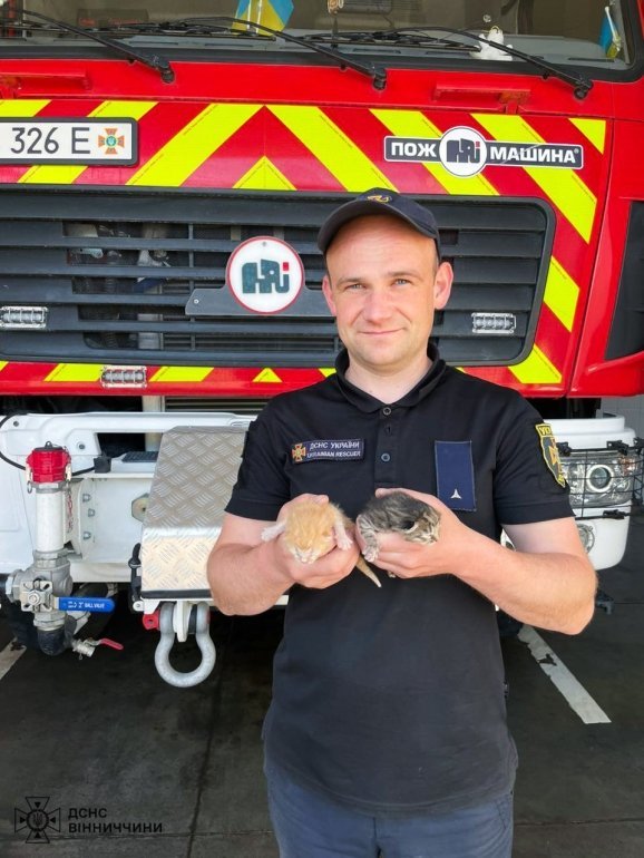 На Вінниччині, у селі Івча Літинської громади рятувальники загасили пожежу в господарчій будівлі і винесли з вогню двох новонароджених кошенят.