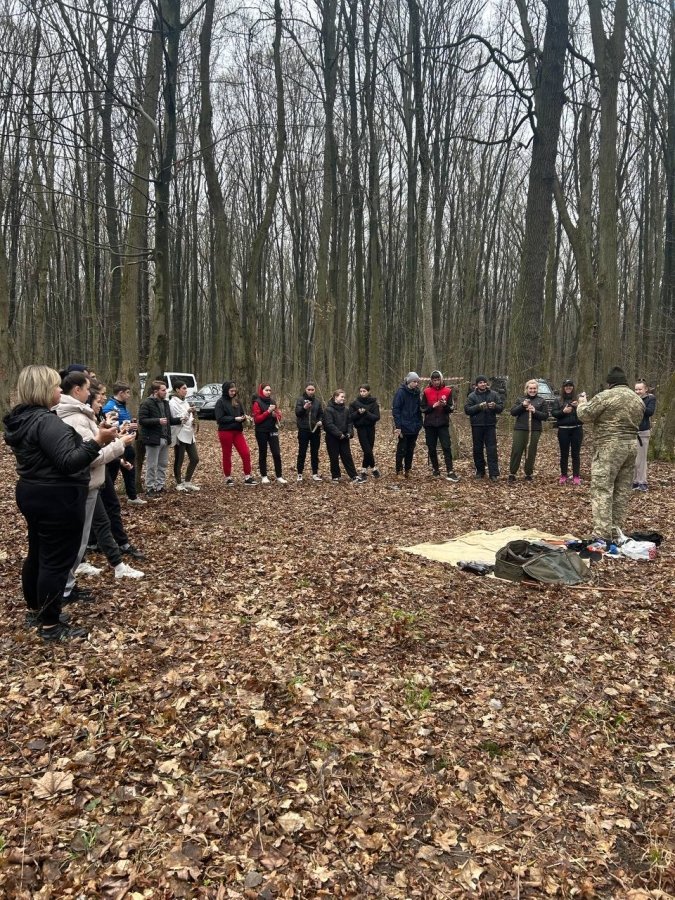 Заняття з тактичної медицини – під керівництвом досвідчених інструкторів учасники навчалися надавати першу допомогу в умовах бойових дій, зупиняти кровотечі та транспортувати поранених.