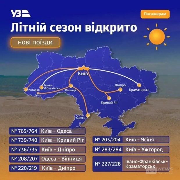 Укрзалізниця оголосила про запуск 18 додаткових поїздів на літній період, аби забезпечити комфортні подорожі під час зростання пасажиропотоку. Серед нових маршрутів — пряме сполучення поїзда №208/207 між Одесою та Вінницею.