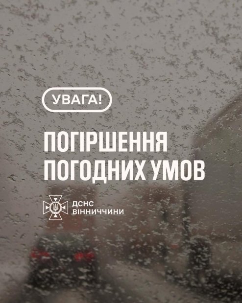9 січня на території Вінницької області очікуються пориви вітру швидкістю 15–20 м/с, ожеледиця на дорогах та значний сніг у нічний час — від 7 до 19 мм. Синоптики оголосили I рівень небезпечності (жовтий).