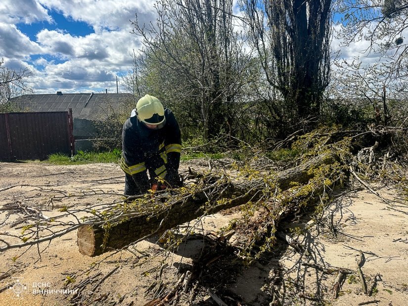 Підрозділи ДСНС двічі залучалися до ліквідації наслідків негоди, розчищаючи дороги від повалених дерев. У Вінницькому та Гайсинському районах сильні пориви вітру спричинили падіння дерев, які перекрили рух транспорту. Рятувальники швидко прибули на місце подій та відновили проїзд автошляхами.
