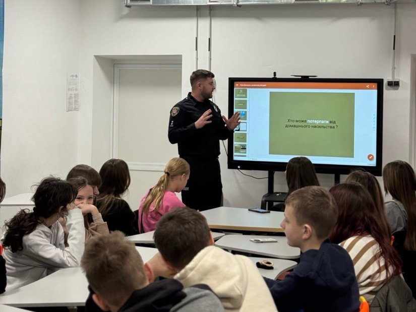Інспектори відділу зв’язків із громадськістю провели інтерактивну зустріч з учнями ліцею №12, присвячену формуванню безпечного та дружнього освітнього простору. Під час заняття обговорили важливі теми — протидію булінгу в школі та поняття домашнього насильства.
