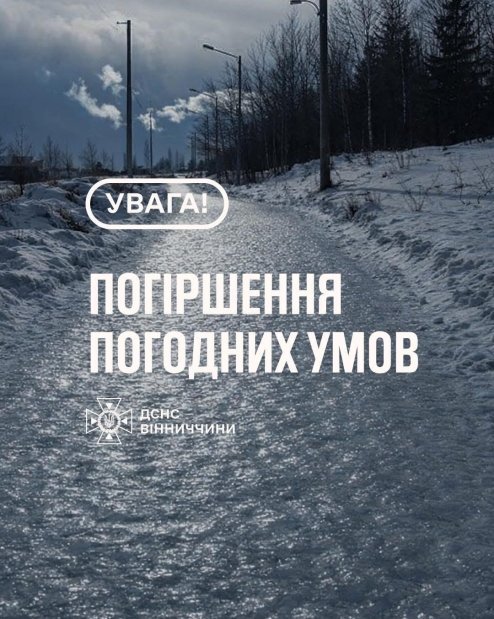Мешканців Вінницької області попереджають про погіршення погодних умов у понеділок, 30 грудня. Головне управління ДСНС у Вінницькій області попереджає про пориви вітру до 15–20 м/с та слизькі дороги. Через це в регіоні оголошено «жовтий» рівень небезпечності.