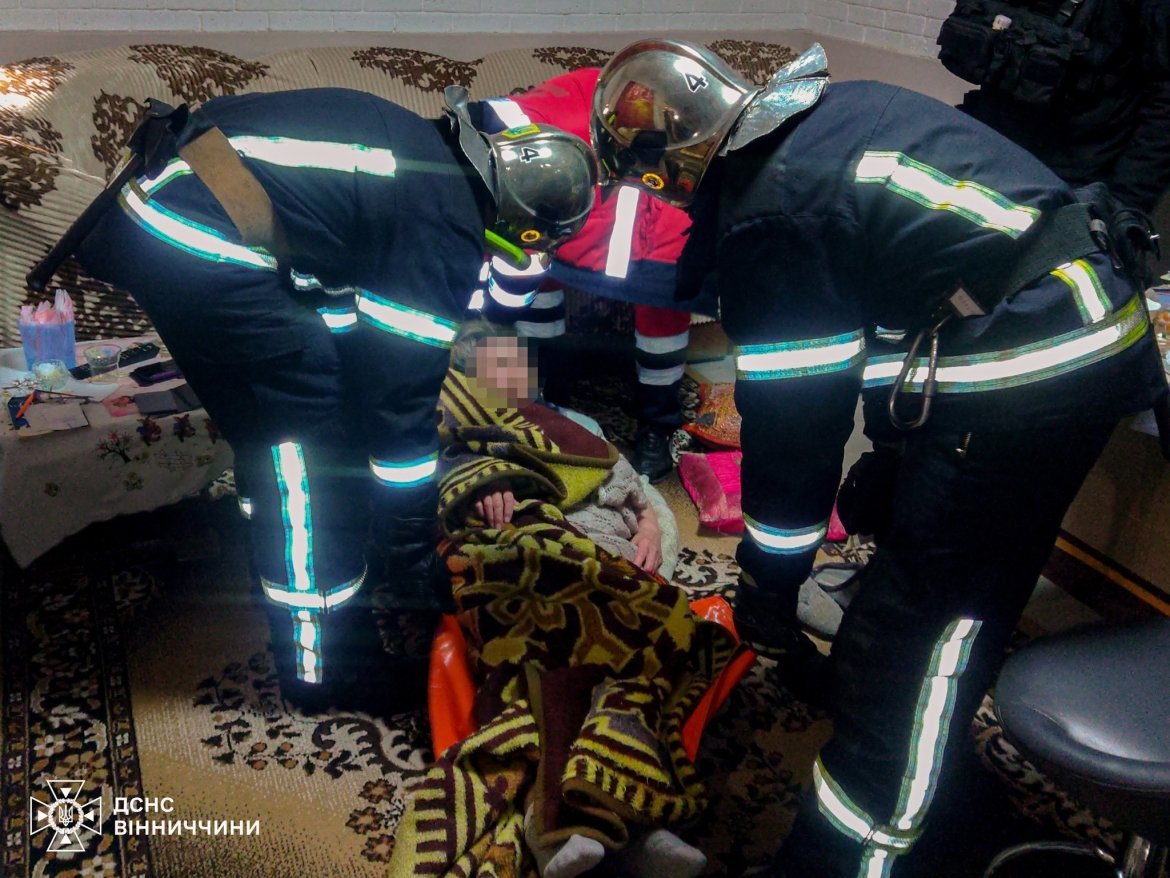 Вранці допомога знадобилася і у Вінниці — на вулиці Олександра Бурбело літня жінка з переломом ноги залишилася на самоті, не маючи змоги підвестися чи покликати когось на допомогу. Надзвичайники швидко потрапили до квартири, обережно перенесли постраждалу на ношах та передали бригаді «швидкої».