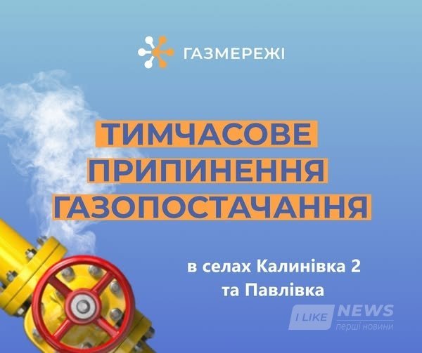 У зв’язку з плановими ремонтними роботами на газорозподільних мережах, з 8:00 12 травня по 16:00 16 травня 2025 року буде тимчасово припинене газопостачання у селах Калинівка 2 та Павлівка Калинівської міської громади.