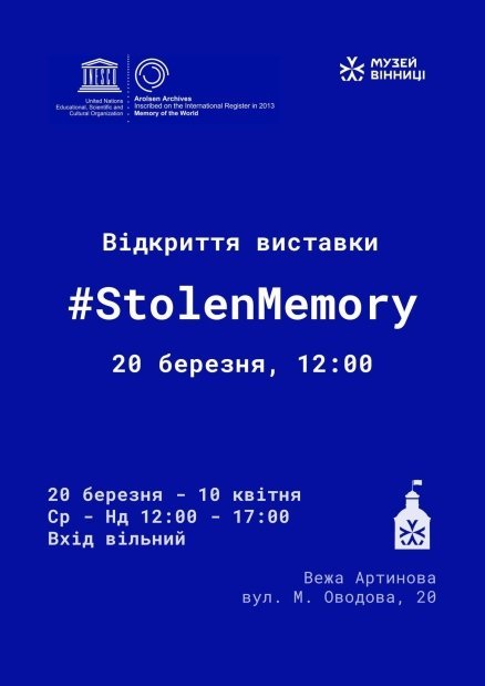 «#StolenMemory» — це мандрівна експозиція, яка розповідає історії людей, ув’язнених у концтаборах, та демонструє фотографії їхніх особистих речей, відібраних під час арештів. Серед таких предметів — обручки, годинники, ручки та гаманці з родинними світлинами. Приблизно 70 із понад 2000 збережених речей належать вихідцям з України.