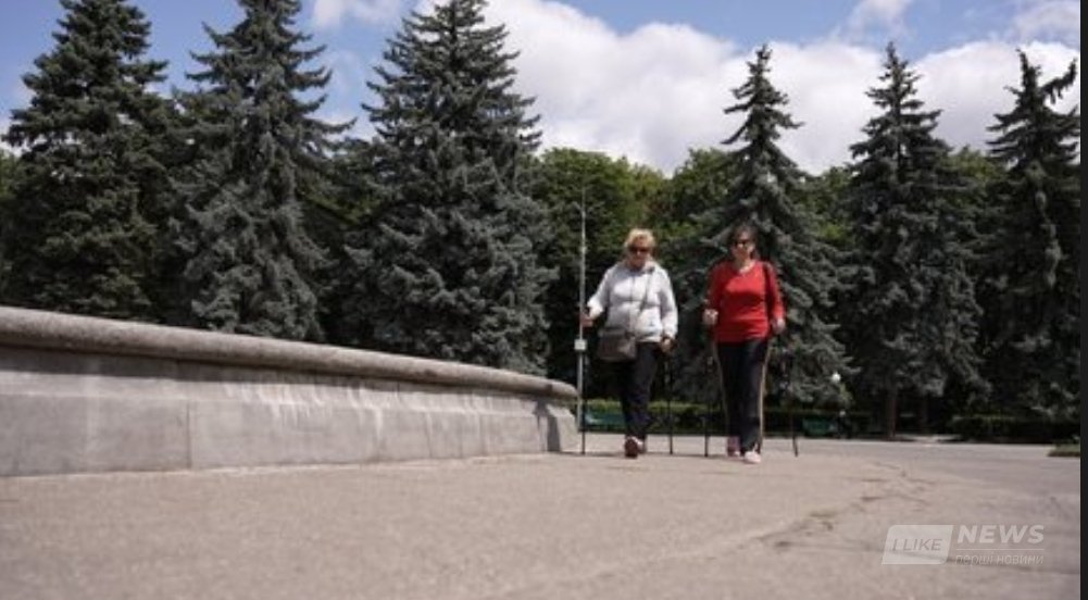 У Вінниці жінки поважного віку активно займаються скандинавською ходьбою. Щотижня вони проходять кілька кілометрів у парках міста під наглядом медичної сестри — для зміцнення здоров’я, підтримки гарного самопочуття й піднесеного настрою.