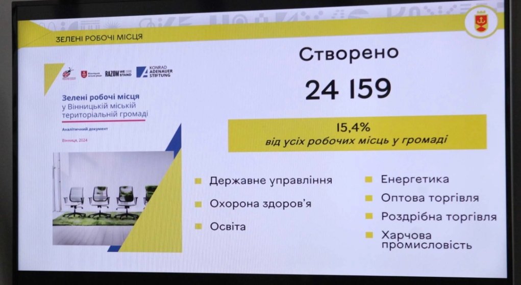 На сьогодні у Вінниці 80 підприємств вже встановили СЕС загальною потужністю 17 МВт, а в сфері сталої енергетики створено понад 24 тисячі робочих місць, що складає 15% від загальної зайнятості в місті.