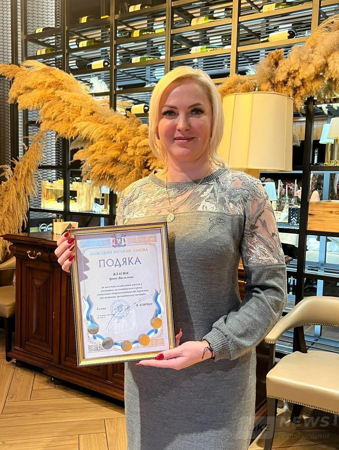 Волонтерка Ірина Власюк отримала подяку від Віталія Кличка - за вагомий особистий внесок у розвиток волонтерського руху, невтомну працю та щире серце, сповнене любов’ю до України. Відзнаку Ірині урочисто передали представники «Української команди» під час зустрічі волонтерів.