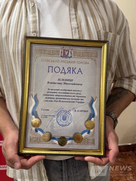 Волонтерський штаб «Українська команда» продовжує відзначати тих, хто щодня своєю працею та небайдужістю підтримує українців у час війни. Цього разу подяку від мера Києва Віталія Кличка отримав Владислав Зелениця — активний волонтер, який робить вагомий внесок у розвиток волонтерського руху.