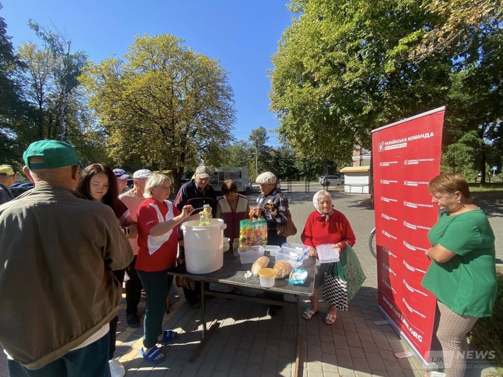 У центрі Гайсина вже стало доброю традицією – щонеділі волонтери «Української команди» роздають гарячі обіди всім, хто цього потребує. Ця ініціатива триває кілька місяців і допомагає сотням мешканців міста та переселенцям отримати теплу їжу й підтримку.