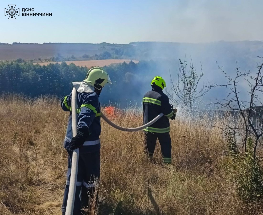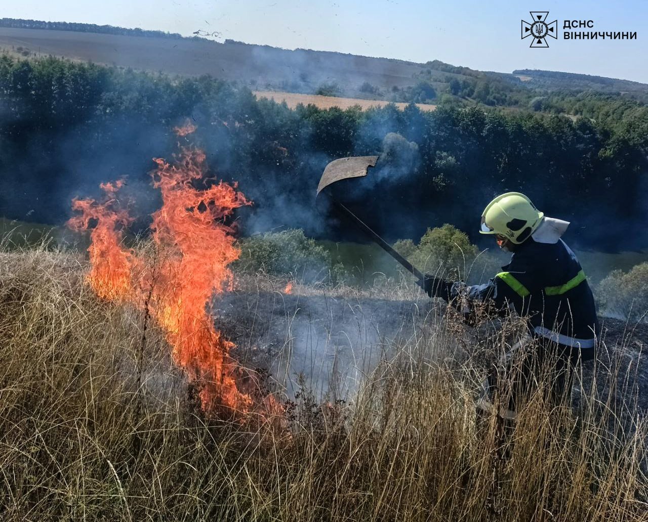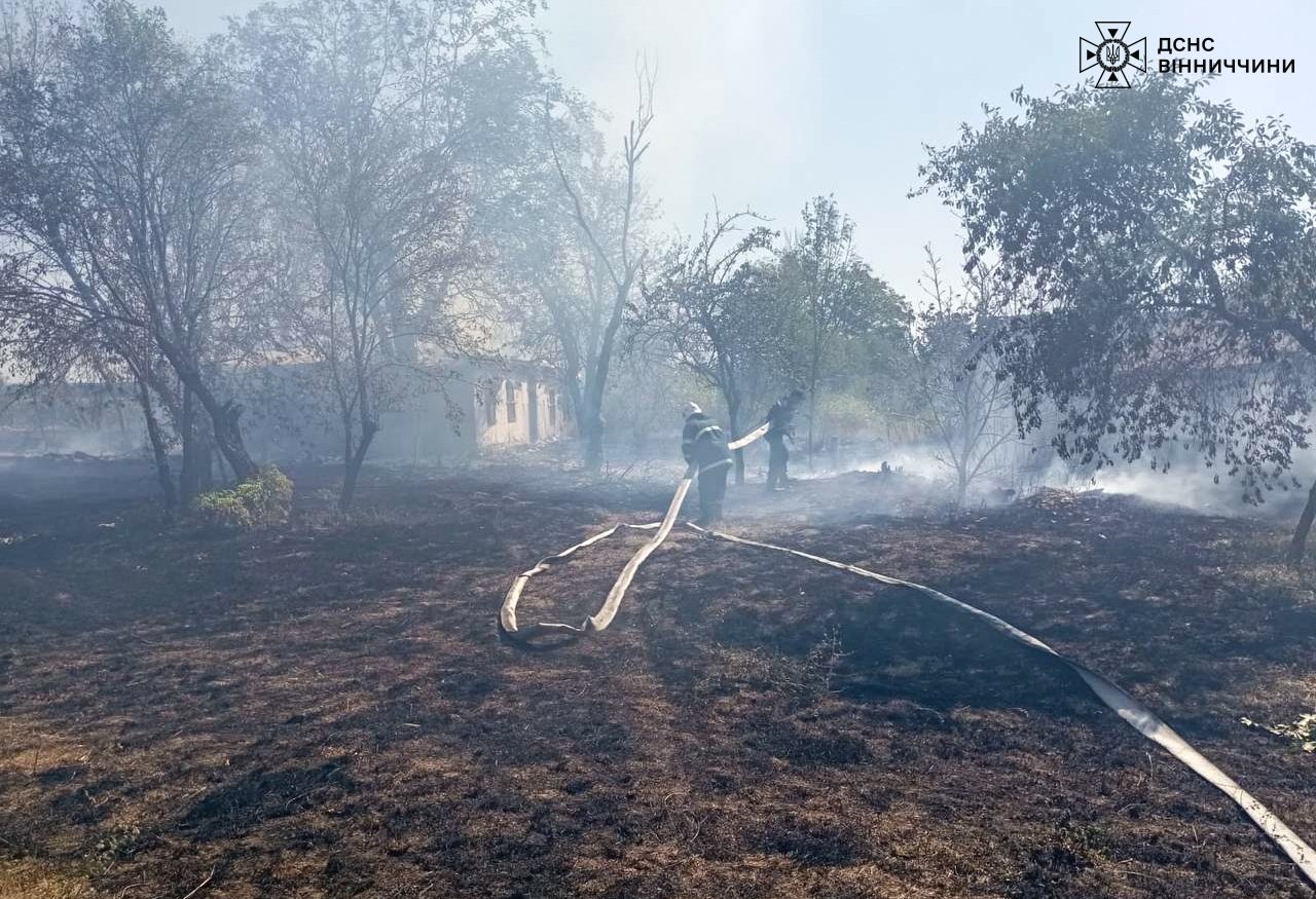 В селі Мала Бушинка Немирівської громади через загоряння сухої трави вогонь перекинувся на господарчу будівлю. У селі Кербівка Гайсинського району згоріло 5 тонн соломи, а в Козятині полум’я знищило металевий контейнер.
