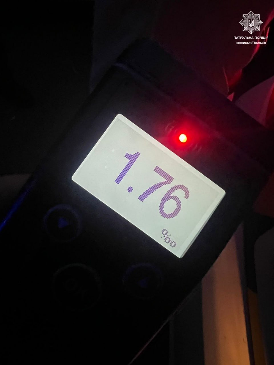 Хлопець погодився пройти огляд на стан сп'яніння на місці зупинки. В організмі водія виявили 1,76 проміле алкоголю.