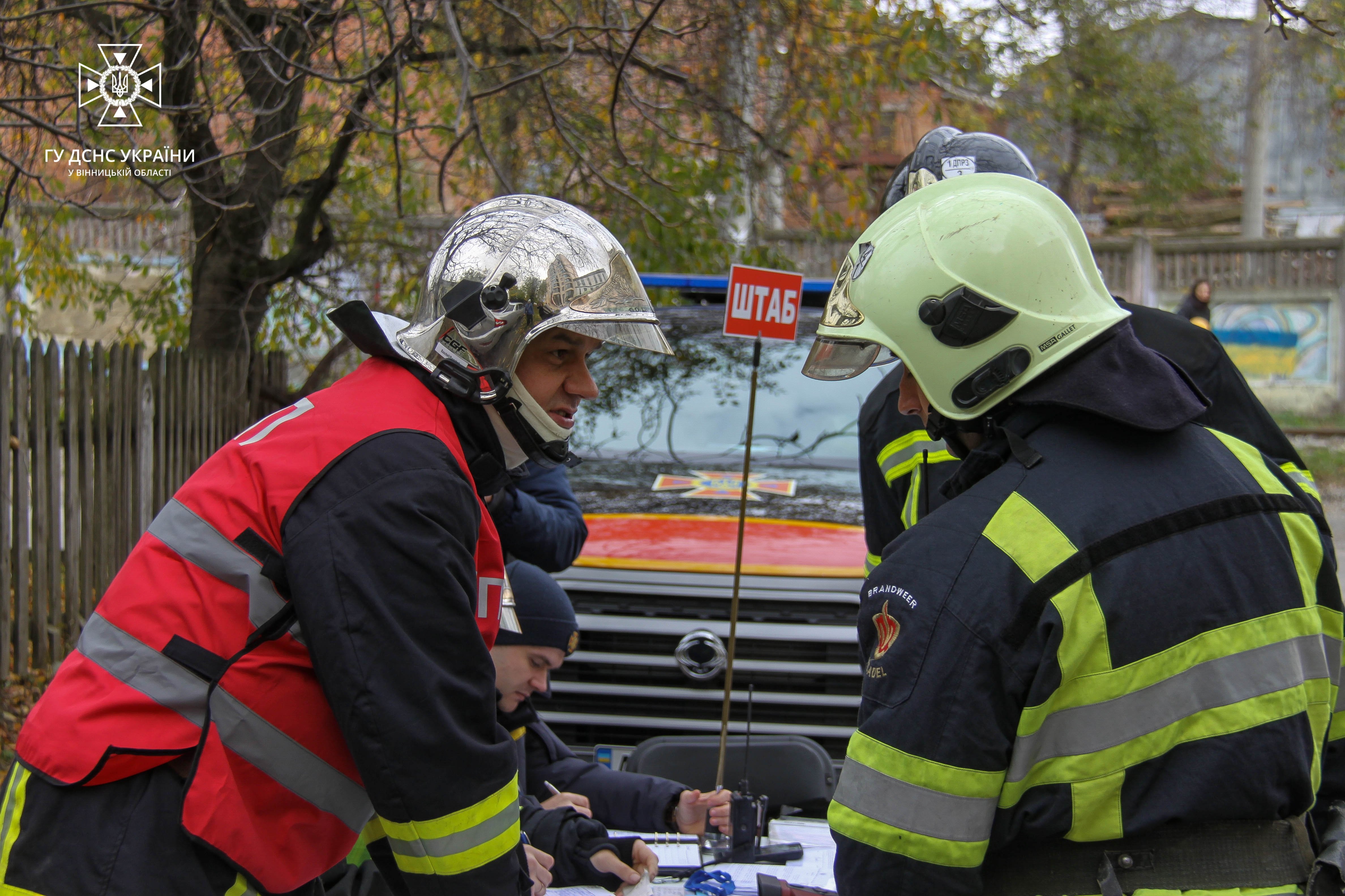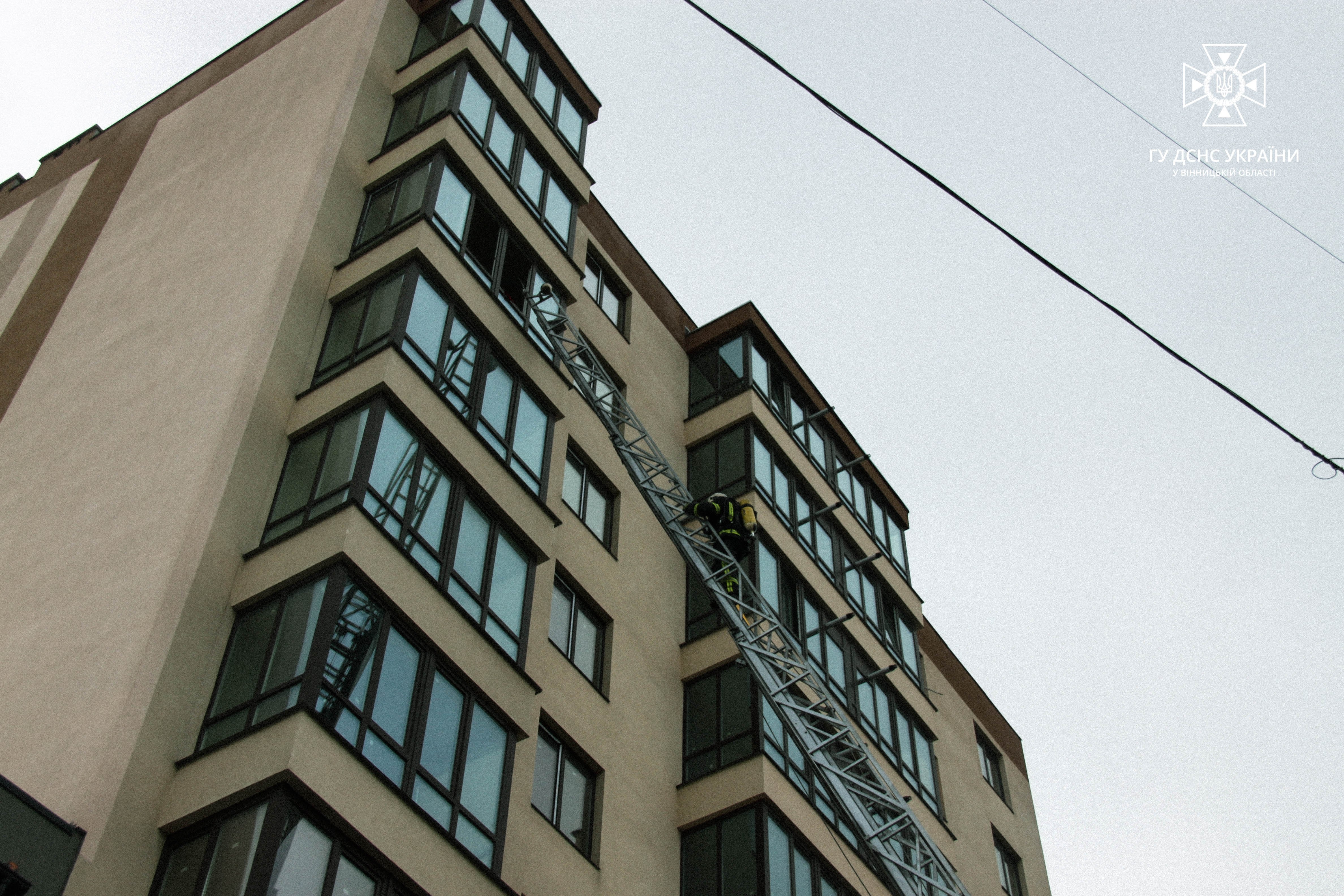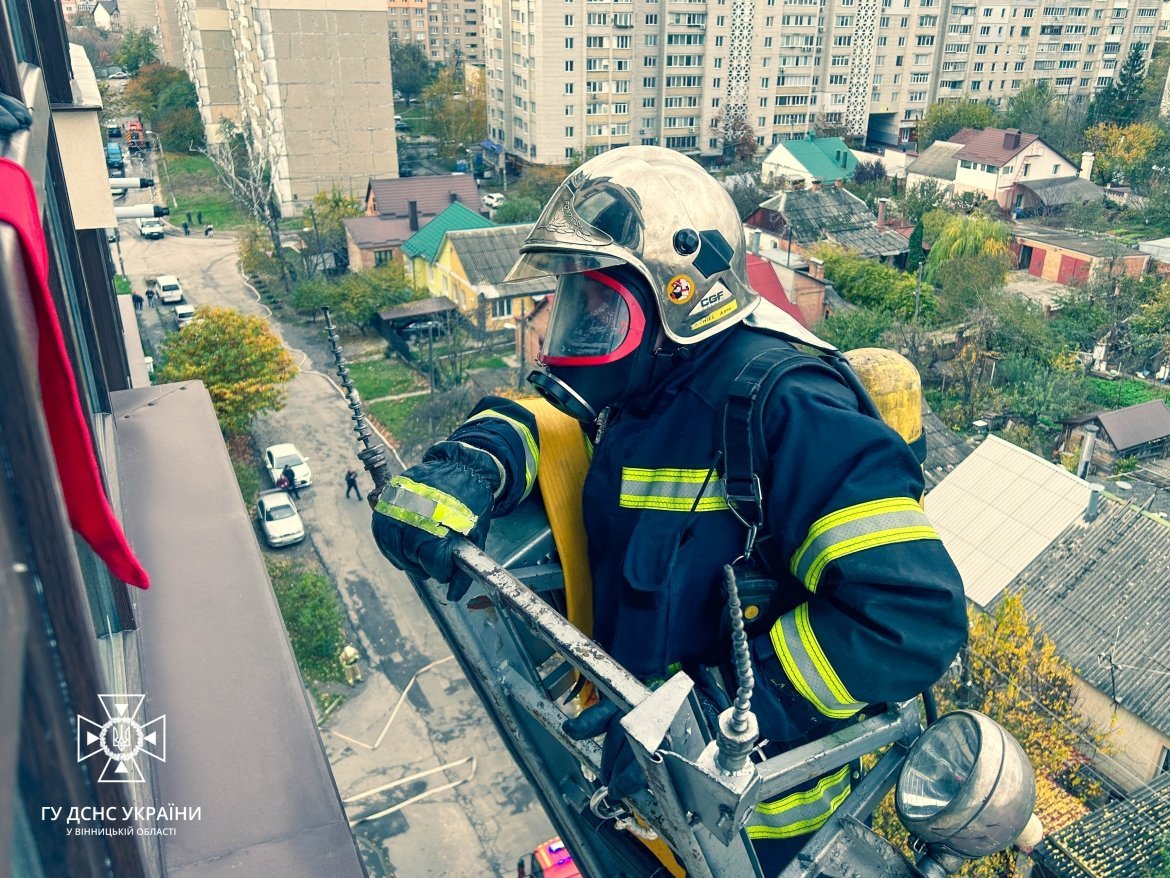 У Вінниці бійці Державної служби з надзвичайних ситуацій (ДСНС) провели навчання з ліквідації пожежі в багатоповерховому будинку. У відомстві повідомили, що до цих тренувань було залучено 40 рятувальників та 6 одиниць техніки. Пожежа виникла на 8 поверсі однієї з квартир у висотці у Вінниці. У зв'язку з сильним задимленням під'їзду, власник квартири залишився заблокований усередині. Рятувальники застосували апарати для захисту дихання та евакуювали людину через балкони та сходову клітину. За допомогою автодрабини та колінчастого підіймача вони приборкали полум'я.