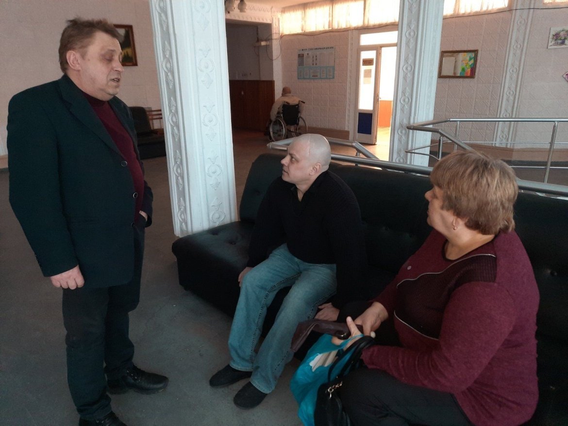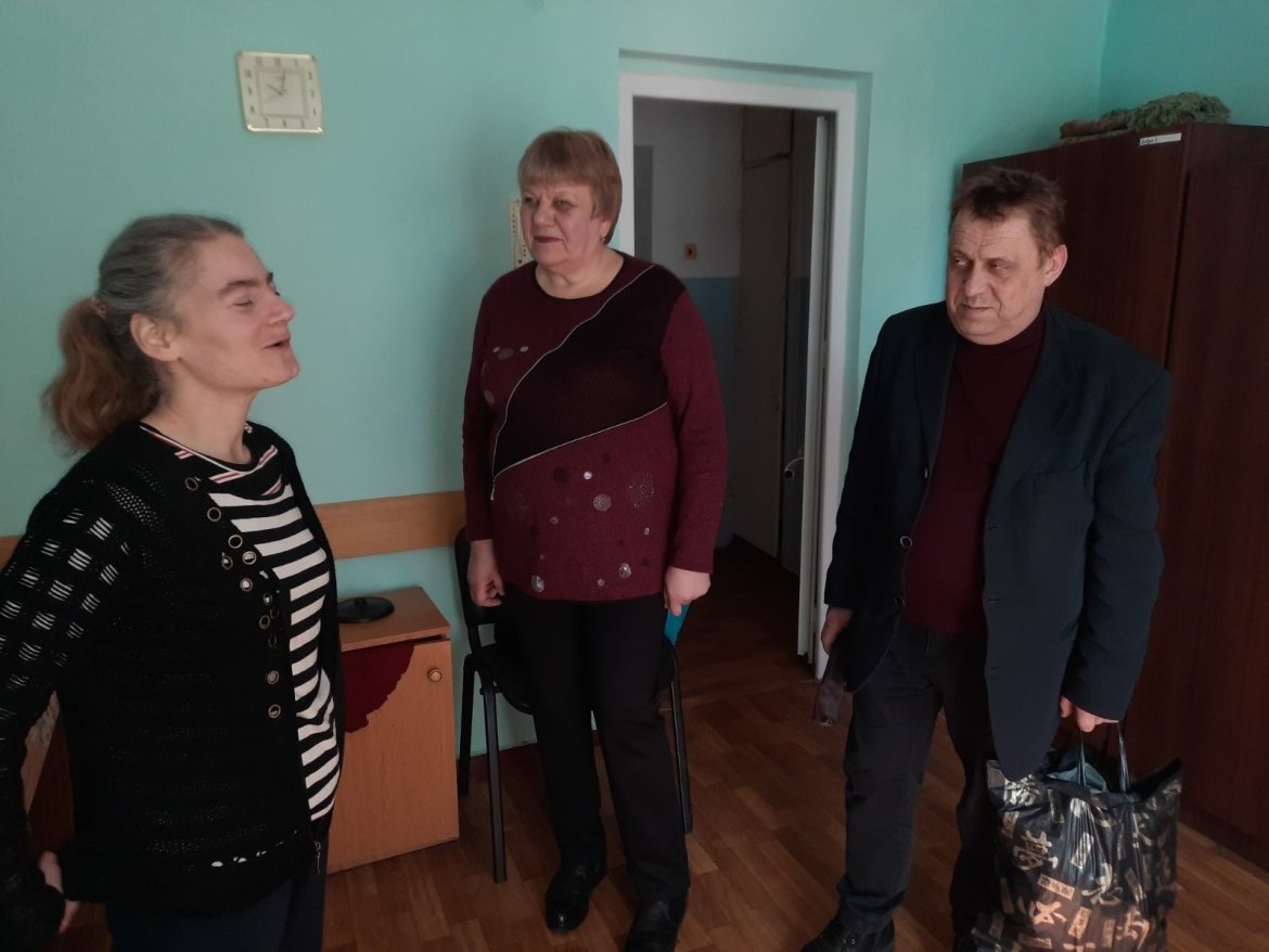 Гості зустрілись із мешканцем пансіонату Дмитром, який втратив зір кілька років тому. Йому подарували тростинку для орієнтування і запросили вступити в члени організації. В свою чергу, Дмитро поцікавився роботою колективу художньою самодіяльності товариства незрячих та обласного осередку федерації незрячих спортсменів України. Як виявилося, він майстерно грає на гітарі. Тому Валентина Порицька запросила його разом із наставником влаштувати творчий вечір на підприємстві УТОС.