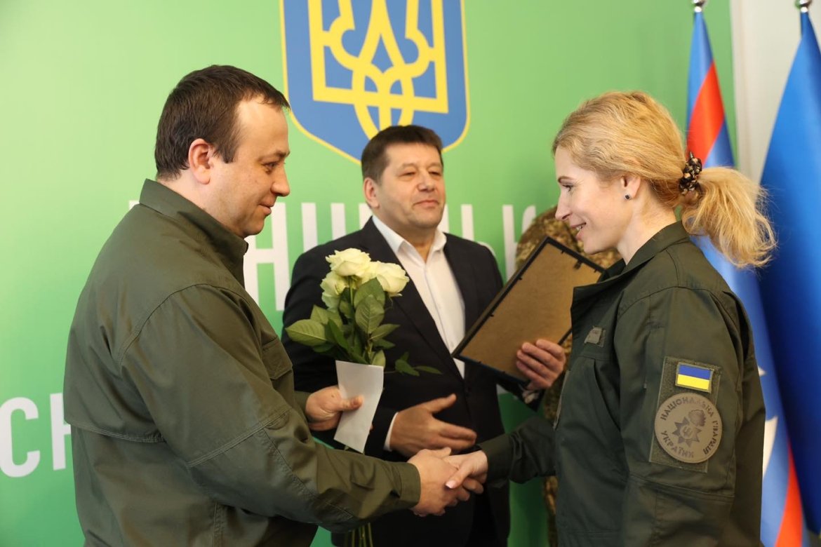 Під час церемонії, присвяченої 10-річчю Національної гвардії України, було вручено державні нагороди відзначеним військовослужбовцям за їхню відданість службі, прикладну дисципліну та сумлінну роботу: