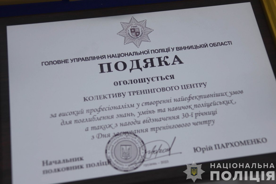 9 грудня у Вінницькій області відбулося відзначення поліцейських спецпідрозділу та інструкторів тренінгового центру Національної поліції з нагоди Дня служби. Учасники заходу отримали висловлення подяки та привітання від полковника поліції та заступника міського Голови. Це було також відзначенням за їхню самовіддану роботу та захист країни під час активної воєнної агресії росії.
