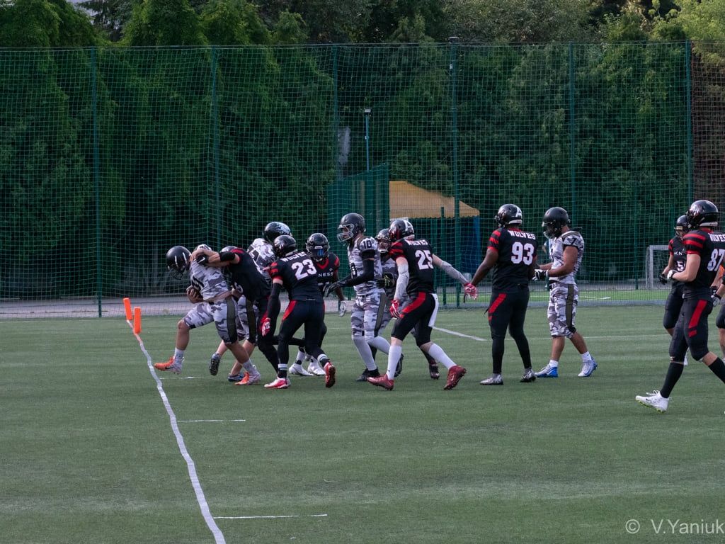 «Вовки» стартували досить впевнено і вже з перших хвилин матчу демонстрували чудову гру. В першій половині їм вдалося занести чотири тачдауни та здійснити вдалі реалізації.