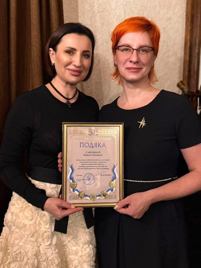 У мережі "Фейсбук" Наталія Саврацька ділиться: кожен українець зараз є волонтером в більшій чи меншій мірі, це не можна виміряти ніяким мірилом. Ми всі, як ті пташки, по краплі допомагаємо тим хто цього потребує. Ситуація спонукає до цього. Оцінка твого внеску у вигляді "Подяки" від Київського міського голови була неочікуваною. В єдності ми сила, я завжди це говорю в нашій спільноті Клуб Успішних Жінок - КУЖ. Наші спільні плани, наші дії це невідʼємна частина командної роботи.