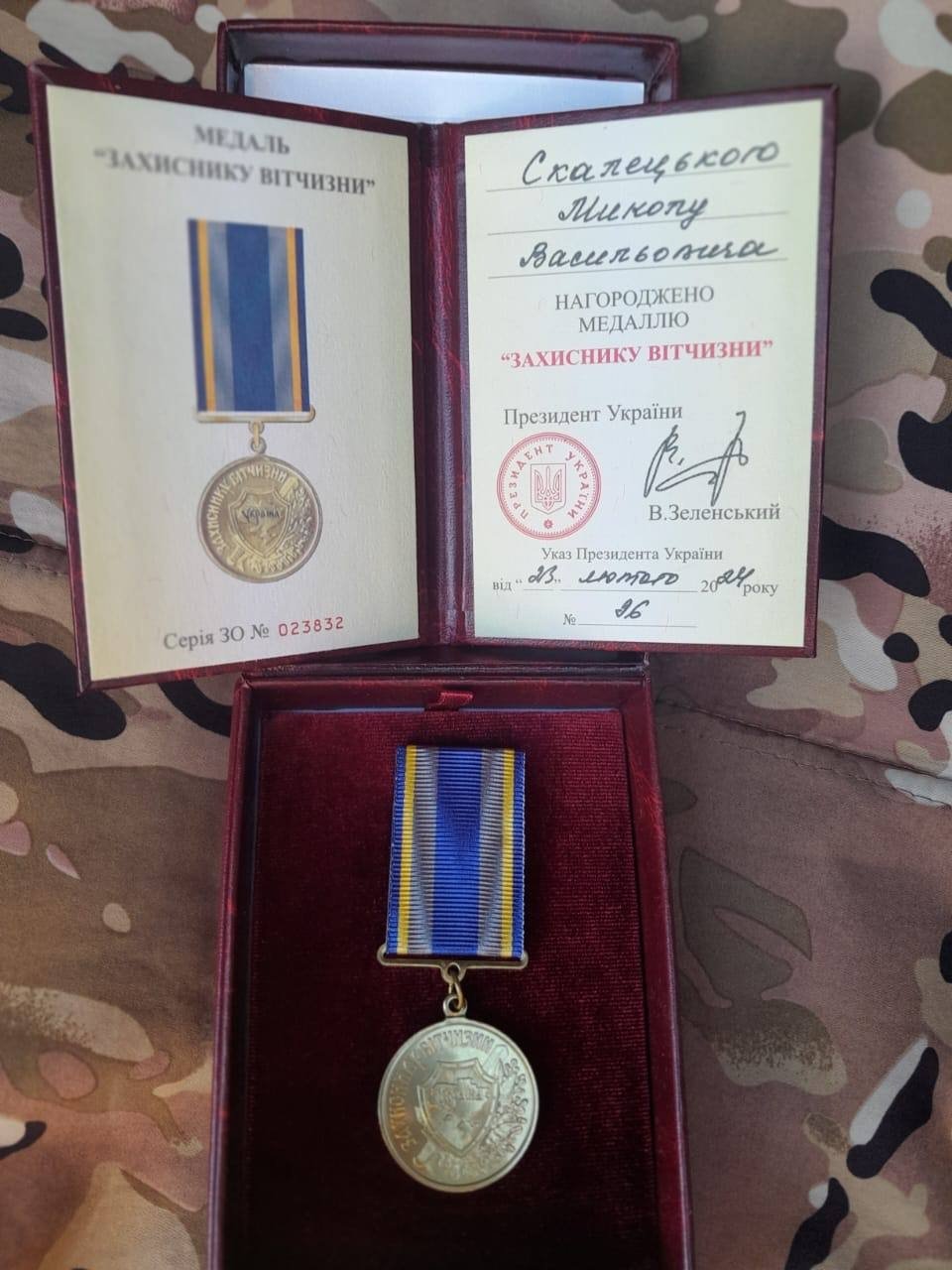 Волонтерська організація "Українська команда" Вінниччини з гордістю повідомляє, що її член, Микола Скалецький, був нагороджений медаллю "Захиснику Вітчизни", яку вручив особисто Президент України.