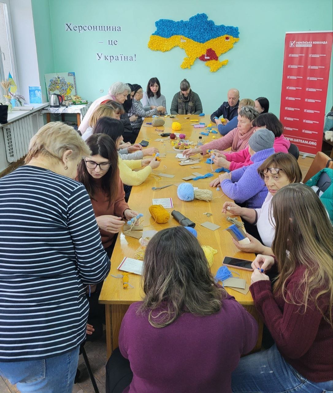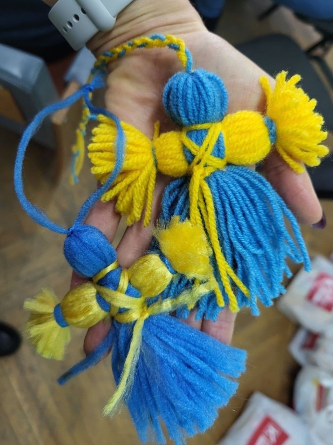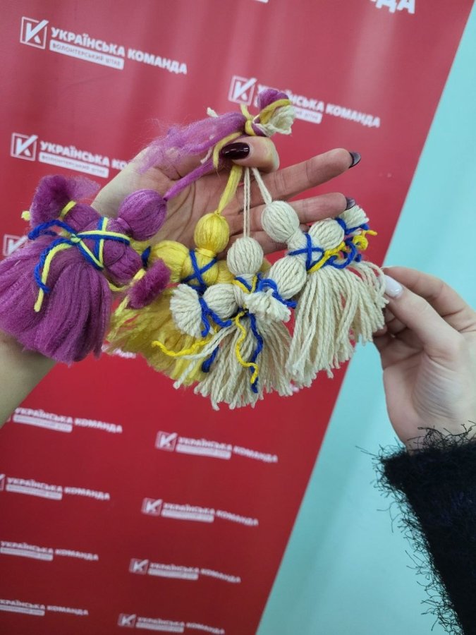 Разом з активістами волонтерського штабу "Українська команда" Вінниччини та Координаційним штабом "Херсонщина - це Україна" було проведено майстер-клас, де вмілі майстрині показували як виготовити янголят або будь-який інший оберіг. Дехто навіть почав вʼязати носки для військових, адже кажуть, що пара теплих носочків зігріває не тільки душу військового, а й ноги у холодних окопах.