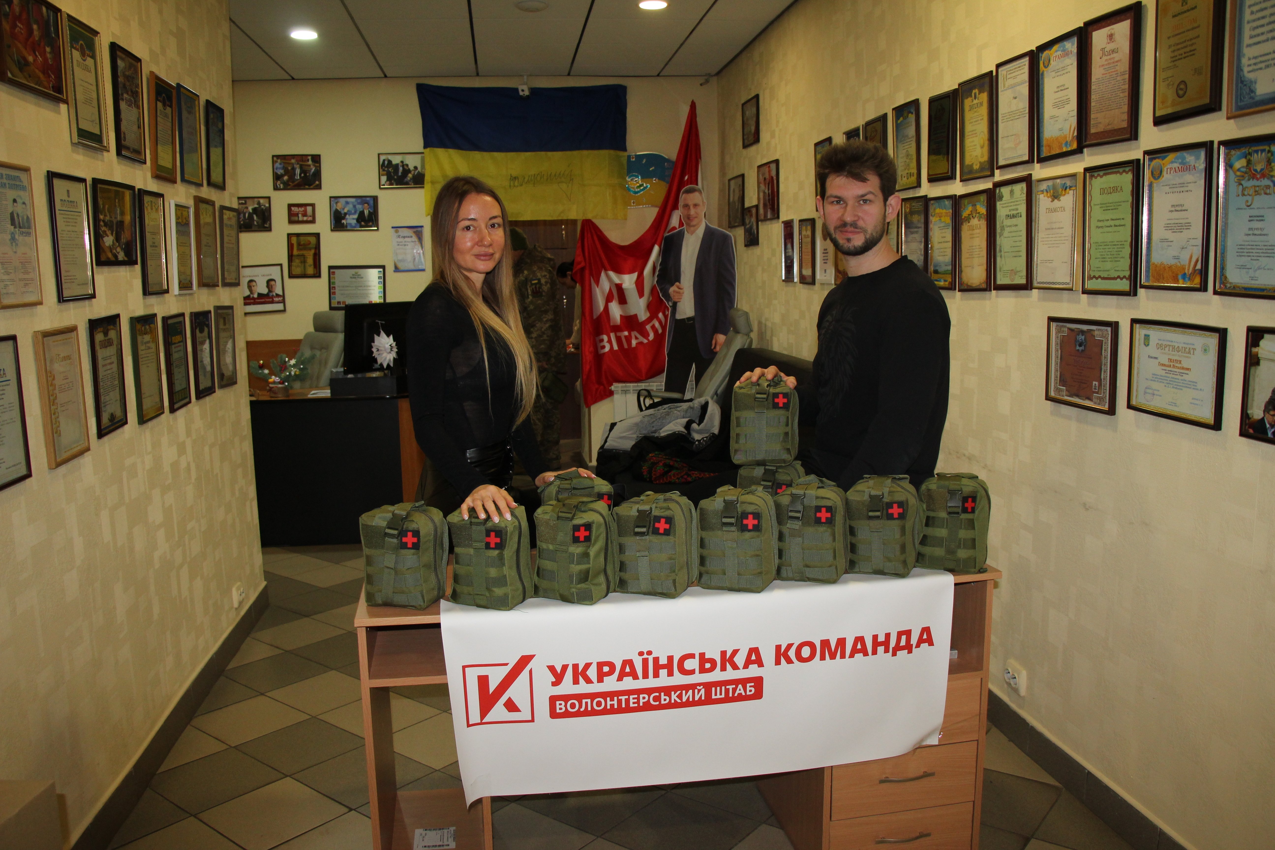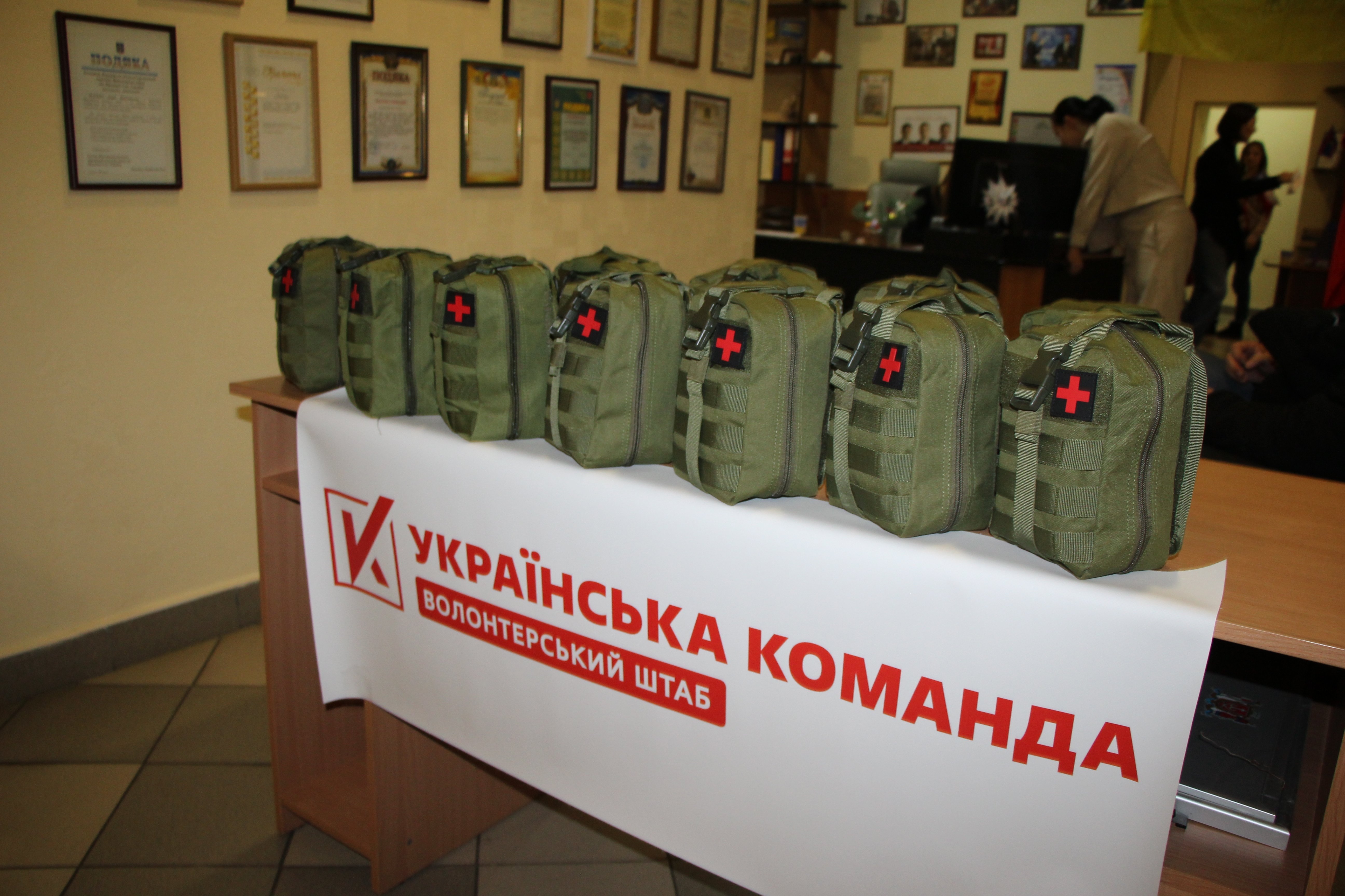 Волонтерський штаб «Українська команда» Вінниччини в черговий раз передав нашим військовим, які відважно боряться з ворогом на передовій, близько 30 військових тактичних аптечок з варіацією видів кріплень і маскувань.