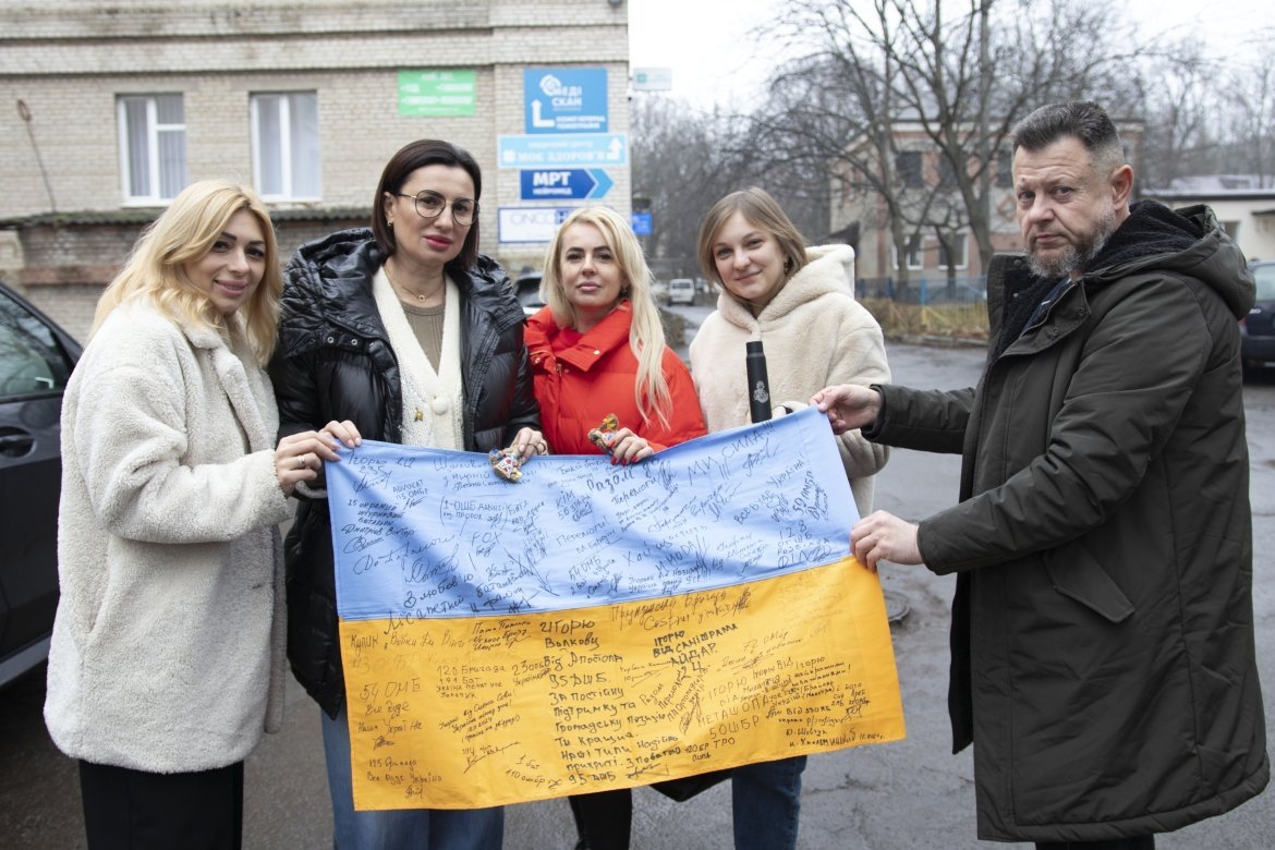 Це ляльки-обереги, створені руками наших героїв, розписана в українському стилі гільза, яка стала справжнім витвором мистецтва, та український прапор зі словами вдячності та різними побажаннями.