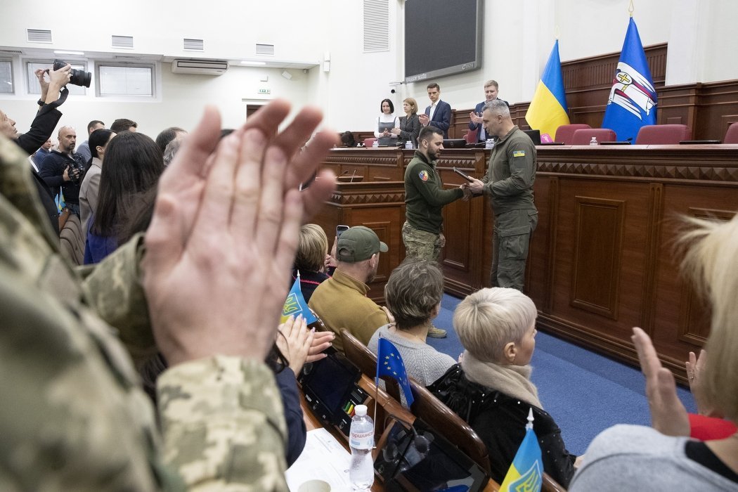 Мер столиці Віталій Кличко на початку засідання Київради вручив нагороди військовослужбовцям, волонтерам та громадським діячам. Подяки Київського міського голови, медалі «Честь. Слава. Держава» та нагрудний знак «За сприяння обороні Києва» отримали понад 50 киян. 4 нагороди присвоєні посмертно. Їх отримали родичі Героїв.