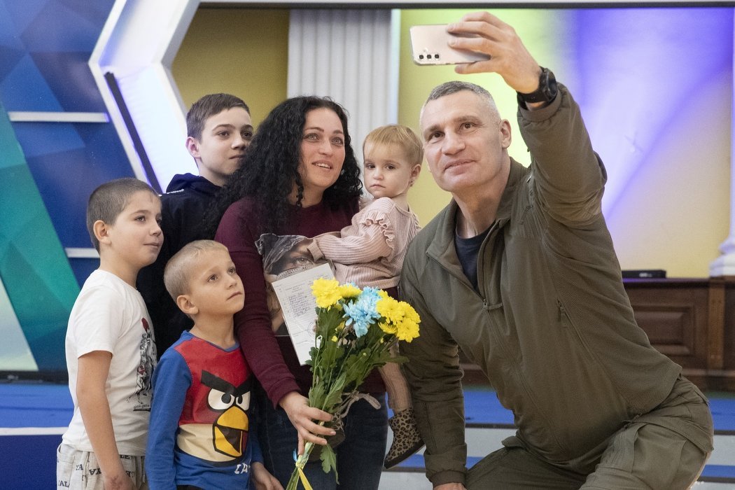 Мер Києва Віталій Кличко у столичній мерії вручив 64 ордери на нові квартири внутрішньо переміщеним особам для тимчасового проживання. Житло є власністю територіальної громади столиці та надається переселенцям безкоштовно.
