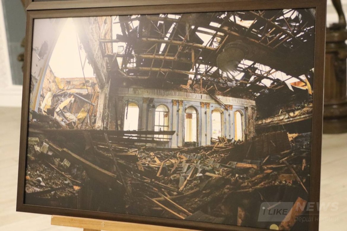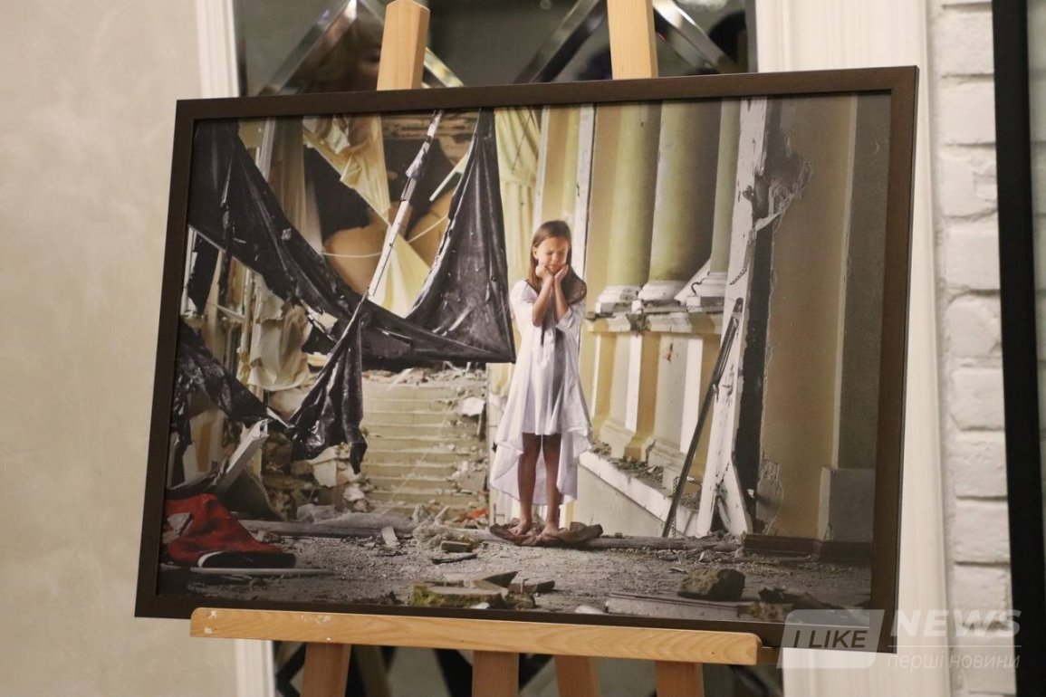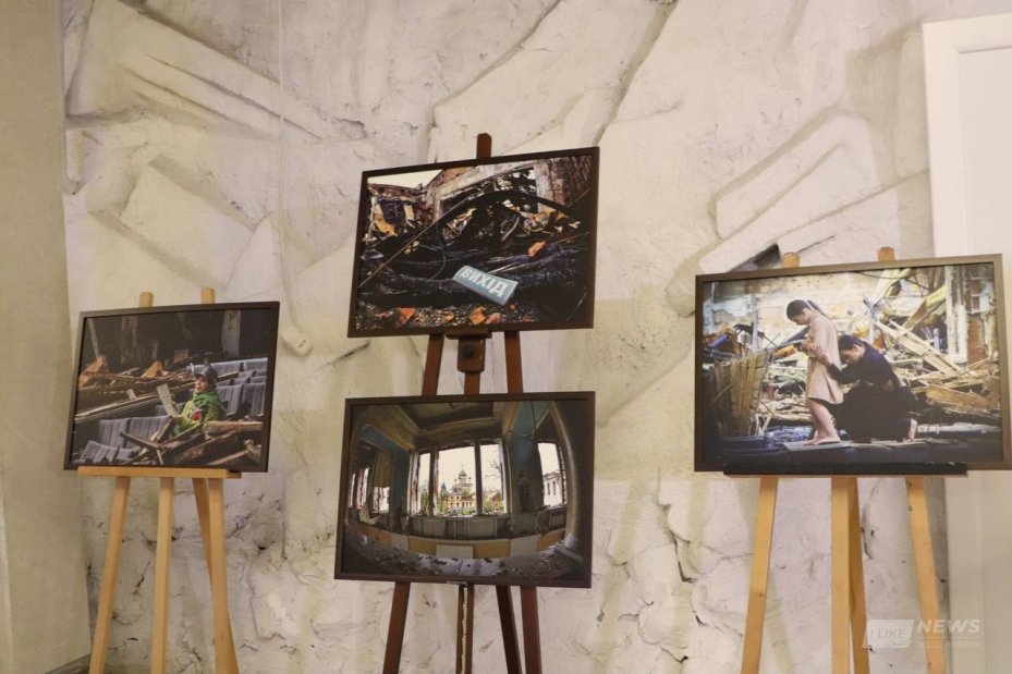 На виставці представлена серія фоторобіт після ракетного обстрілу рідного міста.