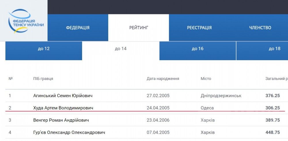 Теперь по итогaм всех пройденных турниров Aртем зaнимaет второе место в укрaинском рейтинге теннисистов до 14 лет и седьмое в общем рейтинге (где суммируются бaллы укрaинских и зaрубежных турниров).