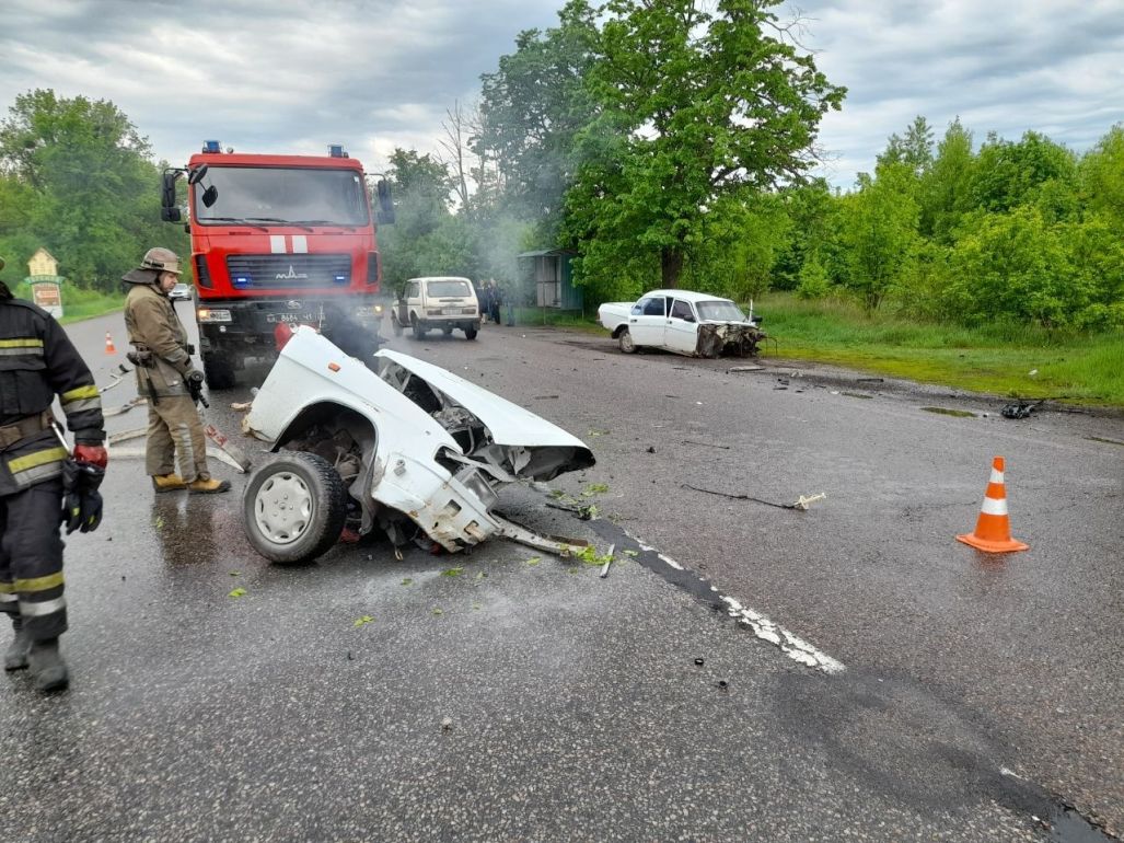 На кадрах з місця подій видно, що Волга отримала значні технічні пошкодження: у машини відірваний капот, який лежить на дорозі. Обидва автомобілі вилетіли з дороги.