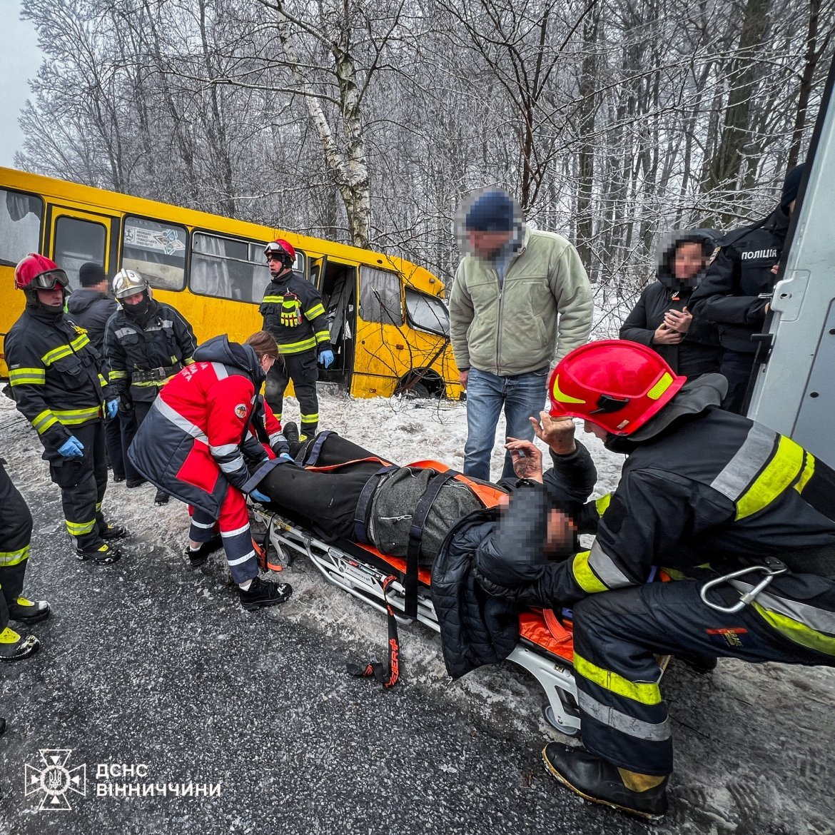 Як з’ясувaлося, через ожеледицю рейсовий aвтобус з’їхaв у кювет тa зіткнувся з деревом.