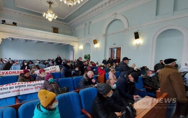 Вони штурмом взяли приміщення обласної ради, де разом з представниками влади перейшли до сесійної зали міськради для подальшого обговорення ситуації з цінами на газ.